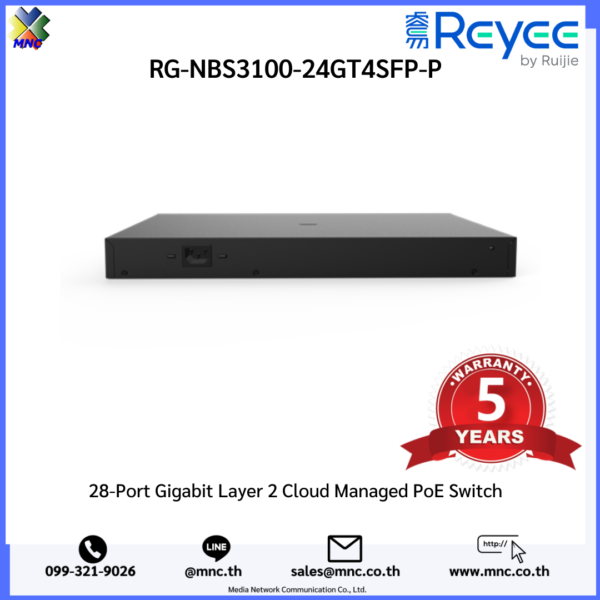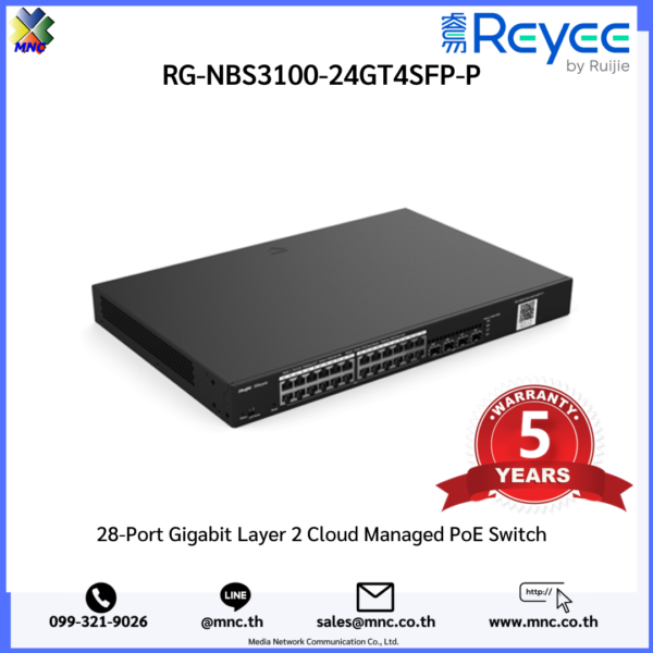 RG-NBS3100-24GT4SFP-P, Reyee 28-Port Gigabit Layer 2 Cloud Managed 24 Port PoE Switch