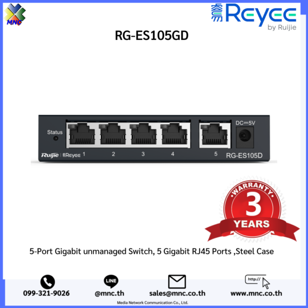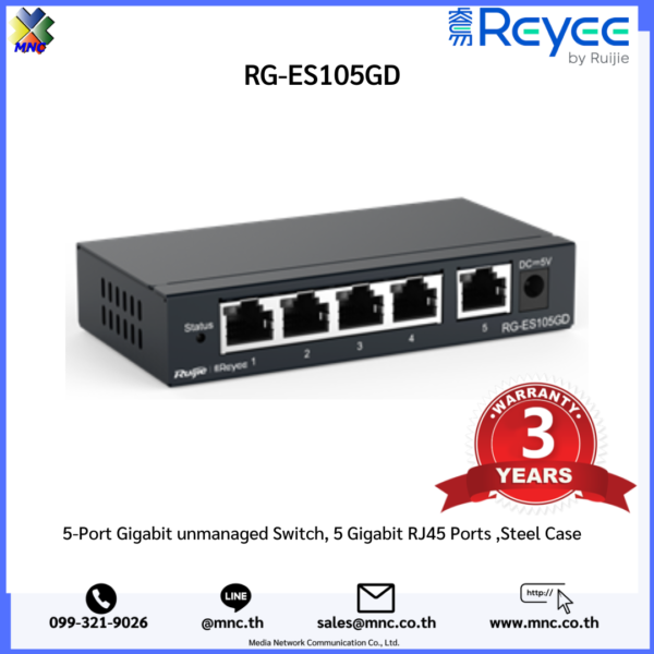 RG-ES105GD,Reyee 5-port 10/100/1000Mbps Unmanaged Non-PoE Switch