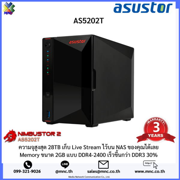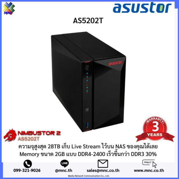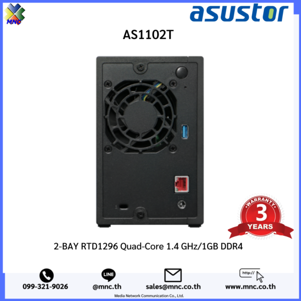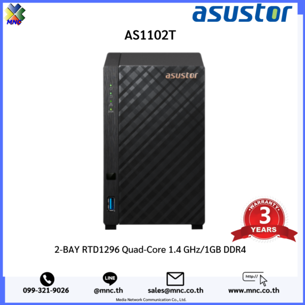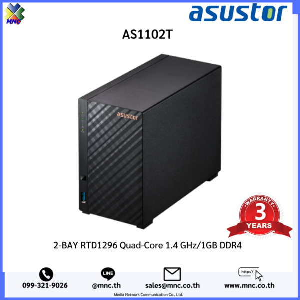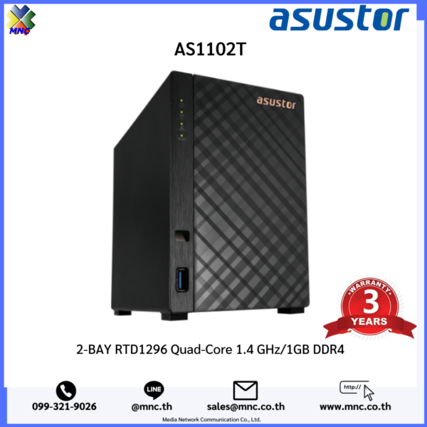 AS1102T, ASUSTOR NAS 2-BAY RTD1296 Quad-Core 1.4 GHz/1GB DDR4 (อุปกรณ์จัดเก็บข้อมูลบนเครือข่าย)