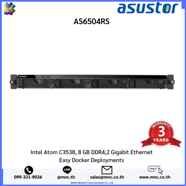 AS6204RS, NAS ASUSTOR 4-BAY CPU 1.6GHz Quad-Core, DDR3L 4GB (อุปกรณ์จัดเก็บข้อมูลบนเครือข่าย)