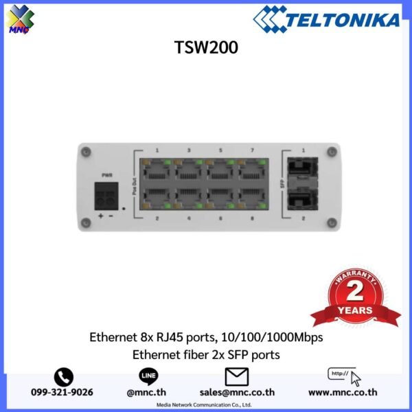 TSW212, Teltonika 8 x Gigabit Ethernet ports and 2 x SFP ports for fibre optic