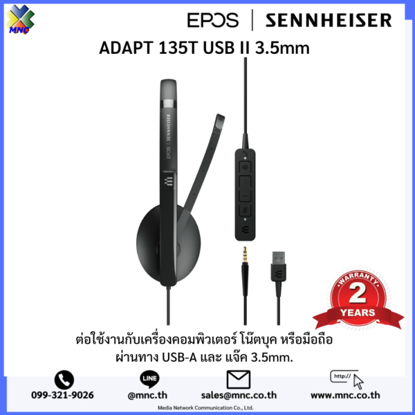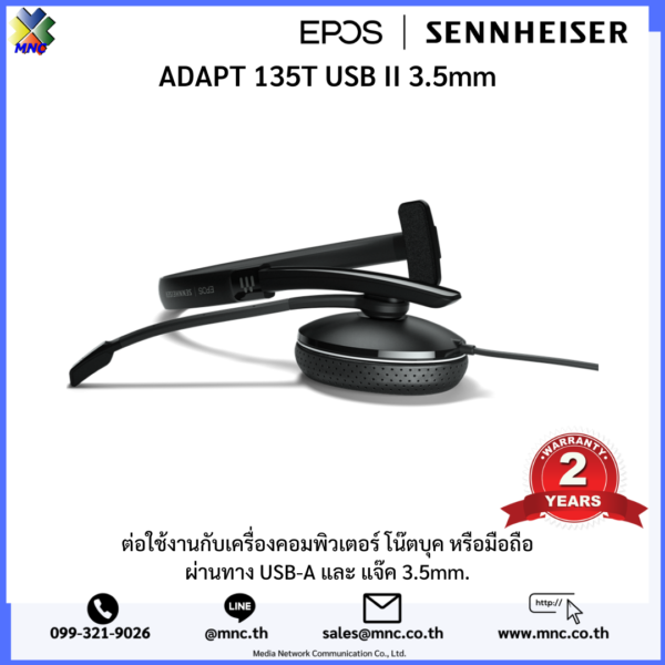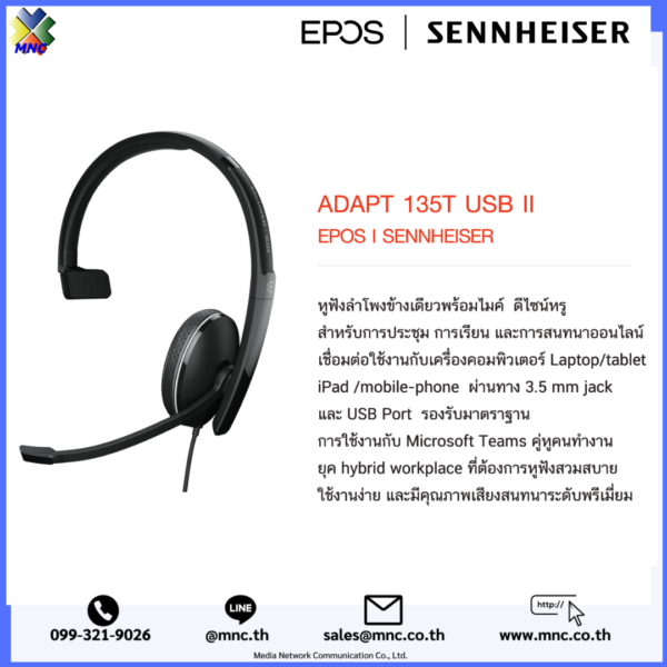 ADAPT 135T USB-C II 3.5mm, EPOS หูฟังหูข้างเดียว Jack3.5mm และ USB-C