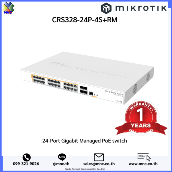 CRS328-24P-4S+RM, 24-Port Gigabit Managed PoE switch 802.3af/at MAX 494 Watts
