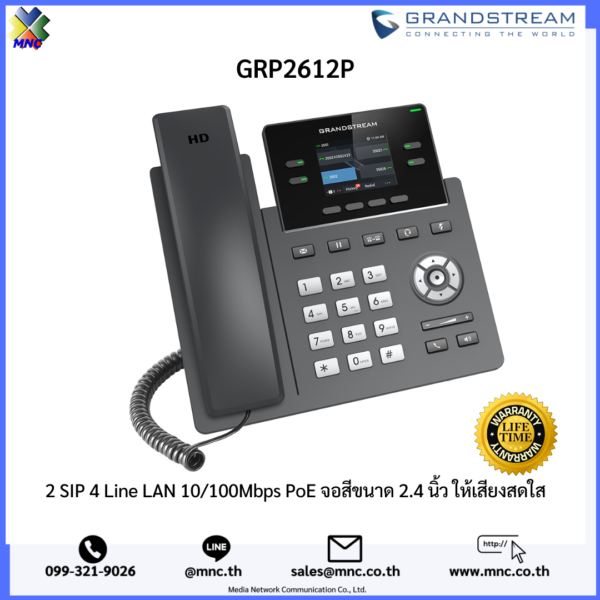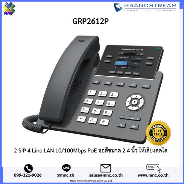 GRP2612P, Grandstream 2 SIP 4 line IP Phone 10/100Mbps 2.4inc LCD color with PoE