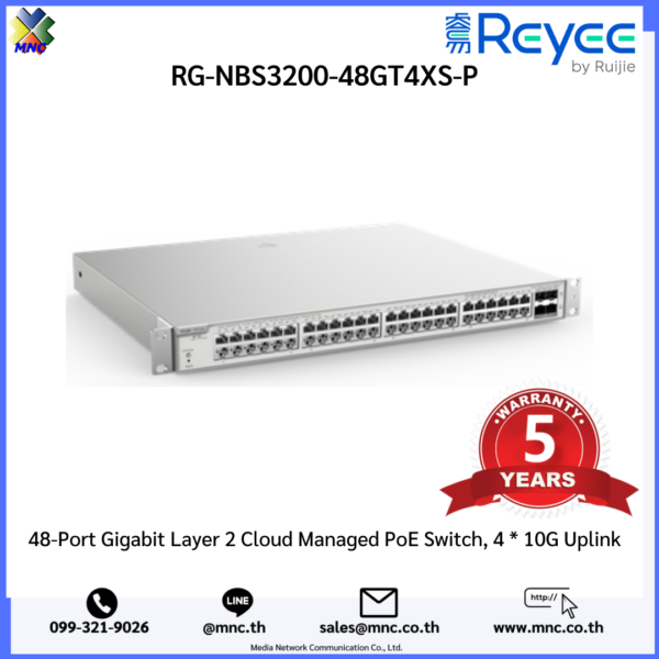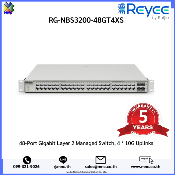 RG-NBS5100-48GT4SFP, Reyee 48-Port Gigabit L2+ Managed Switch,48 Gigabit RJ45 Ports,4 SFP Ports