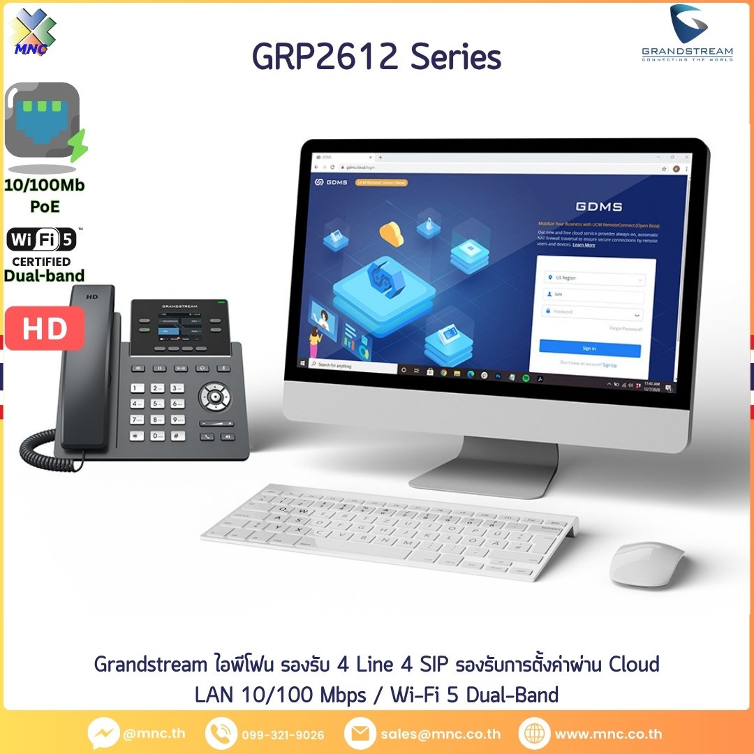 The GRP2612 features a sleek design and a suite of next-generation features including WiFi support on the GRP2612W and PoE on the GRP2612P/GRP2612W. Key features include 16 virtual multi-purpose keys (VPKs), a color LCD with swappable faceplates for easy logo customization and more. The GRP series includes carrier-grade security features to provide enterprise-level security, including secure boot, dual firmware images and encrypted data storage. For cloud provisioning and centralized management, the GRP2612 is supported by Grandstream’s Device Management System (GDMS), which provides a centralized interface to configure, provision, manage and monitor deployments of Grandstream endpoints.