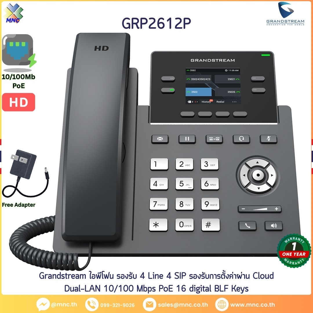 Package Content | GRP2612 phone, handset with cord, phone stand, 5V power adapter (with GRP2612/GRP2612W only), network cable, Quick Installation Guide, GPL license |