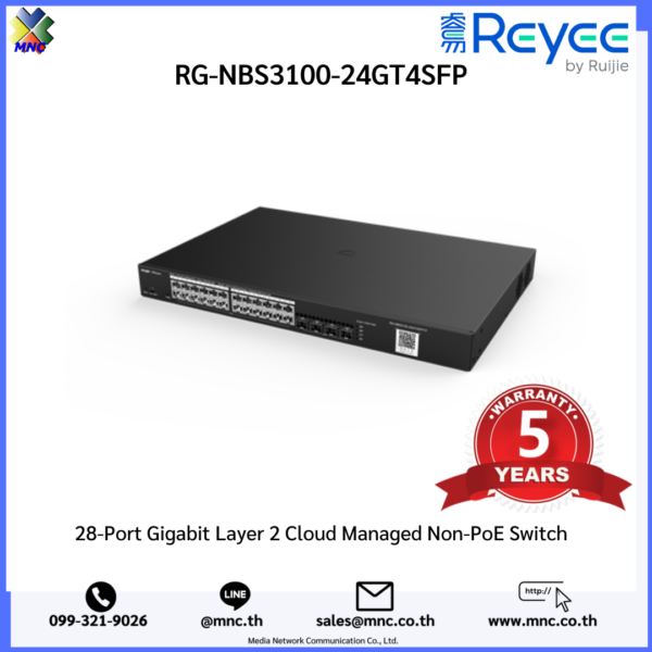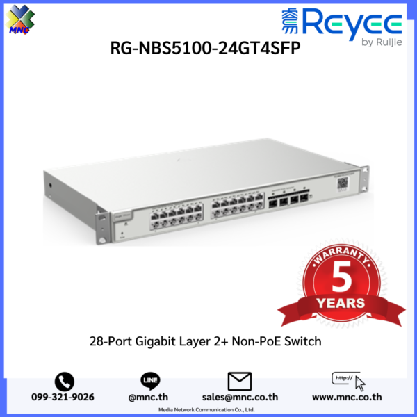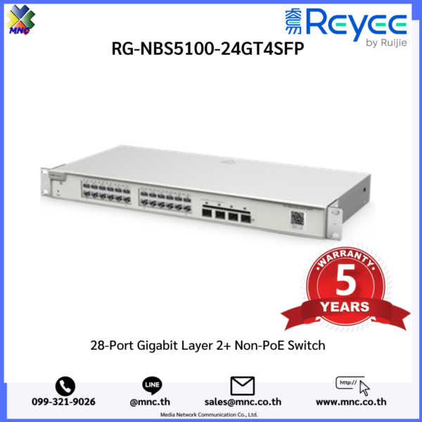 RG-NBS5100-24GT4SFP, Reyee Switch 28-Port Gigabit Layer 2+ Non-PoE