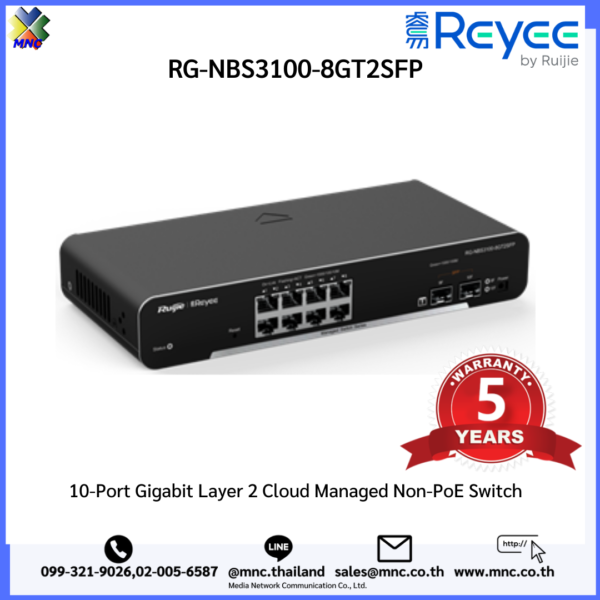 RG-NBS3100-8GT2SFP, (ราคาพิเศษ) Reyee 10-Port Gigabit Layer 2 Cloud Managed Non-PoE Switch