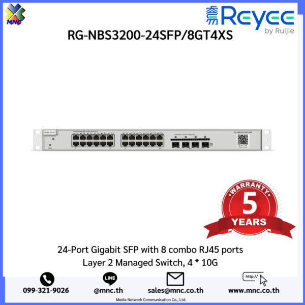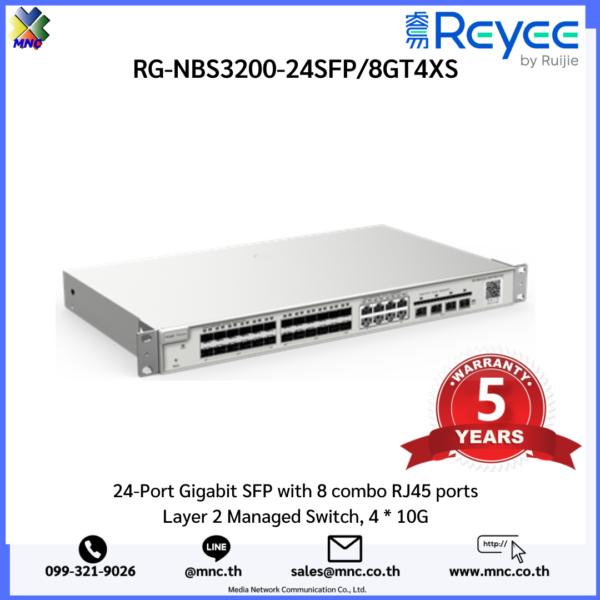 RG-NBS3200-24SFP/8GT4XS, Reyee 24-Port Gigabit SFP with 8 combo RJ45 ports Layer 2 Managed Switch, 4 * 10G
