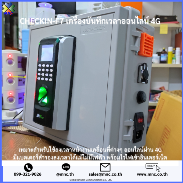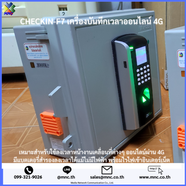 CHECKIN-F7, เครื่องลงเวลาผ่านระบบ ออนไลน์ 4G มีแบตเตอรี่สำรอง 4-5 ชั่วโมง